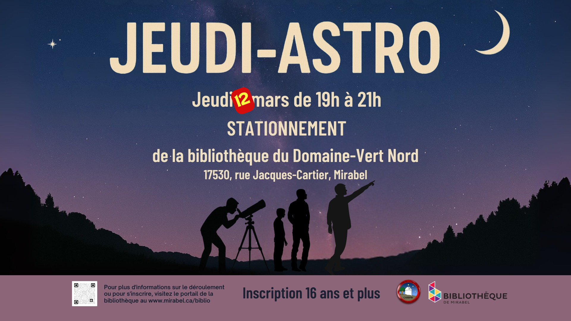 En collaboration avec les bibliothèques de Mirabel, notre club est invité à animer deux soirées d’observation astronomique ouvertes au grand public.